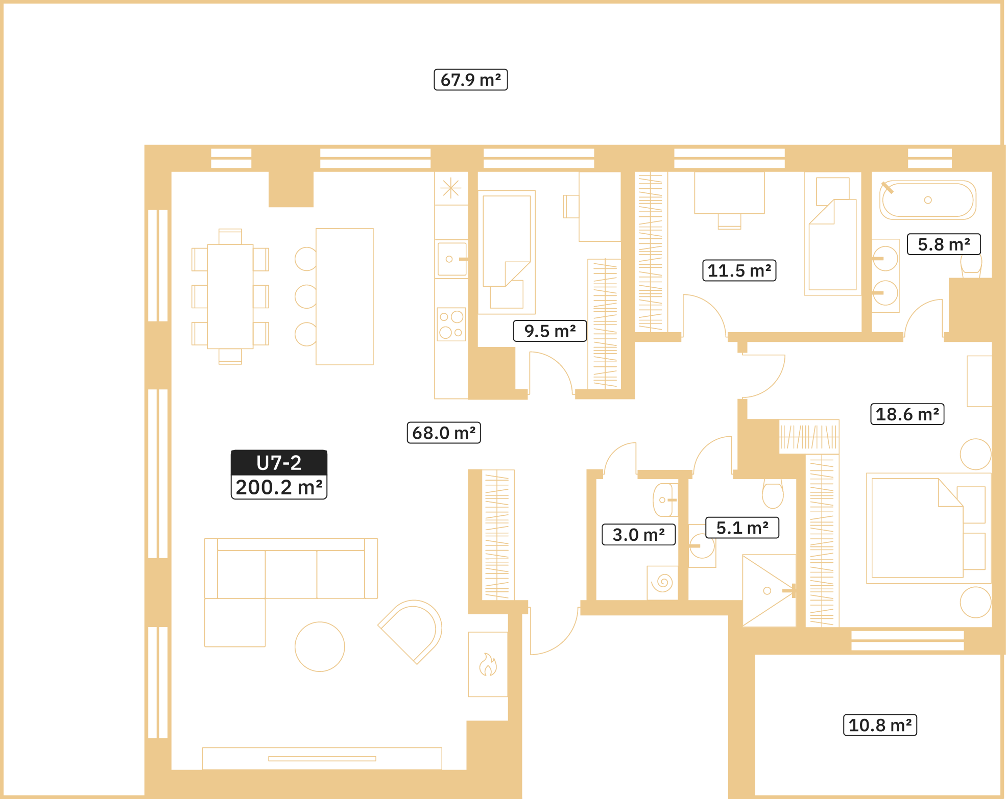4 istabas | Iekštelpu platība 121.5 m2 | Kopējā platība 200.2 m2 | 554 800 EUR